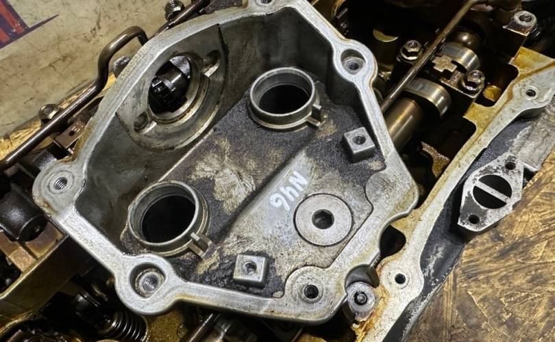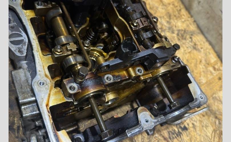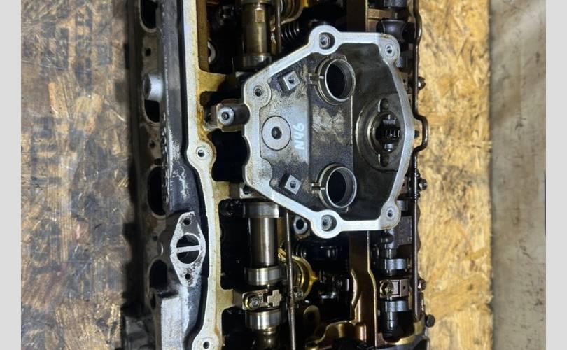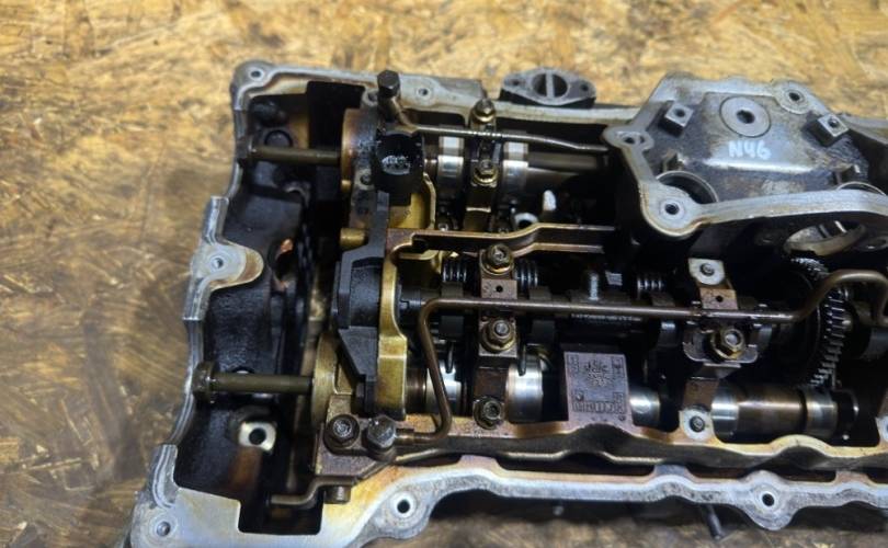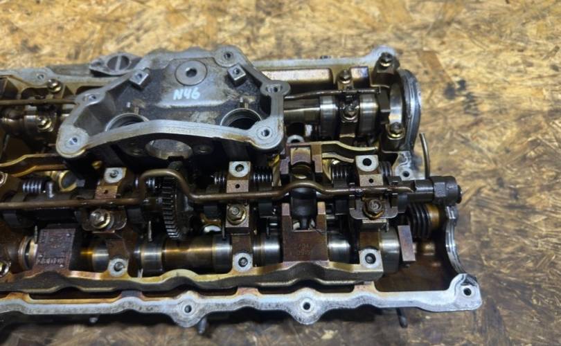 Гбц n46b20 (N46N - рестайлинг) в сборе с впускным распределительным валом, выпускным распределительным валом, эксцентриковым валом, пастелью распредвалов, клапанами впускными и выпускными