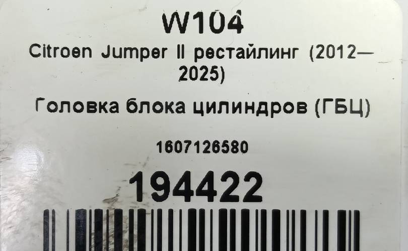 Головка блока цилиндров (ГБЦ) на Citroen Jumper II рестайлинг (2012—2025) 1607126580