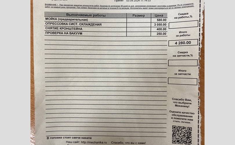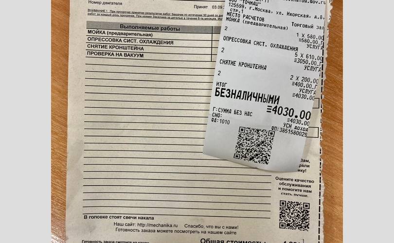Есть подтверждающие документы (заказ-наряд + чек).