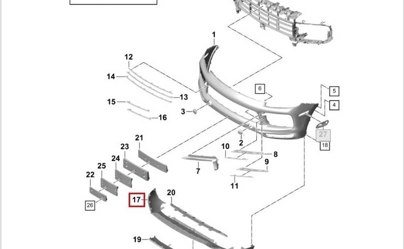 Губа юбка бампера Porsche Cayenne 2010-2017 958