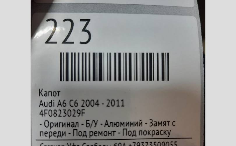 Капот Audi A6 2004 - 2011 4F0823029F С6
