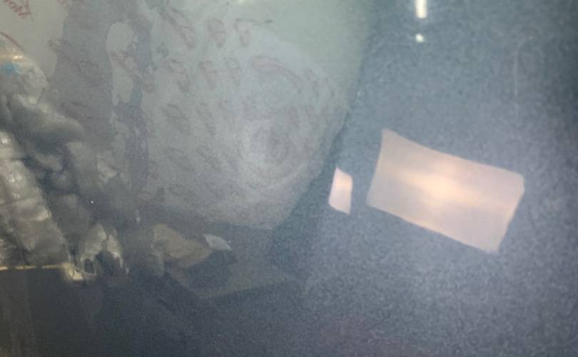 транспортировочные царапины, сколы. Тычок в верхней части. Залом в левом верхнем углу.