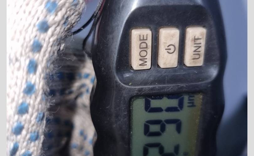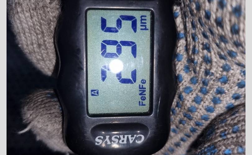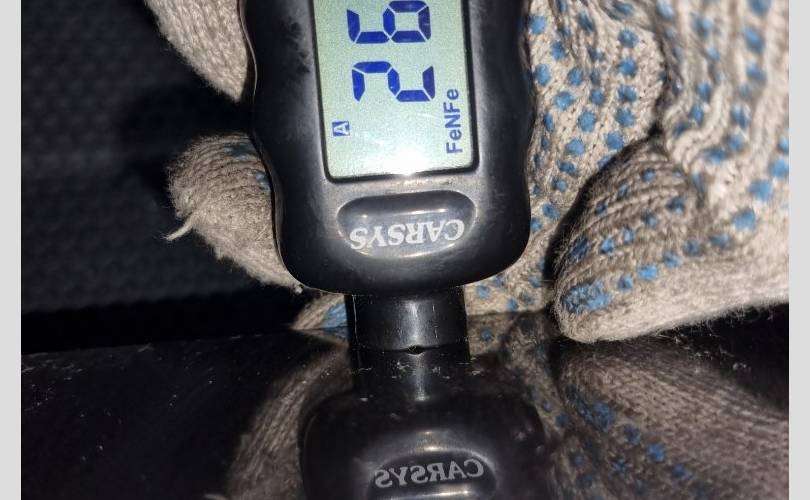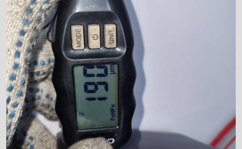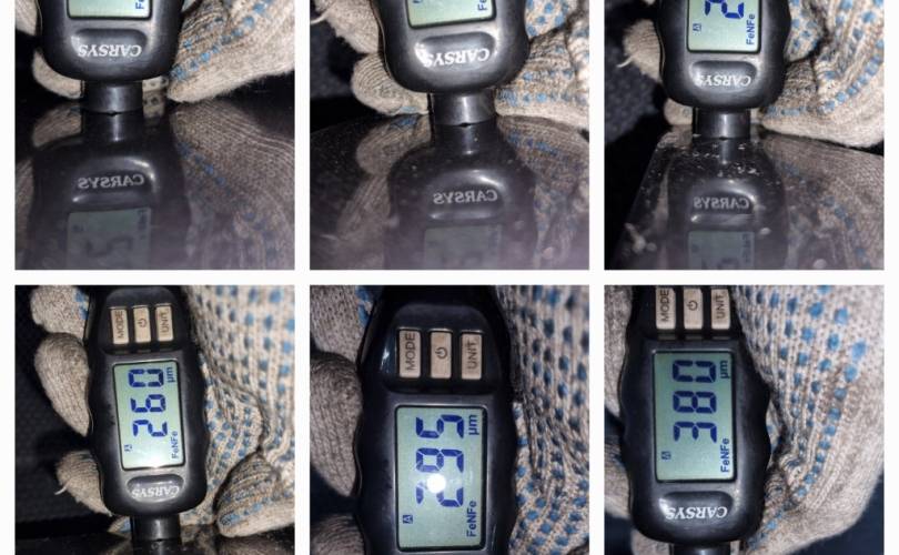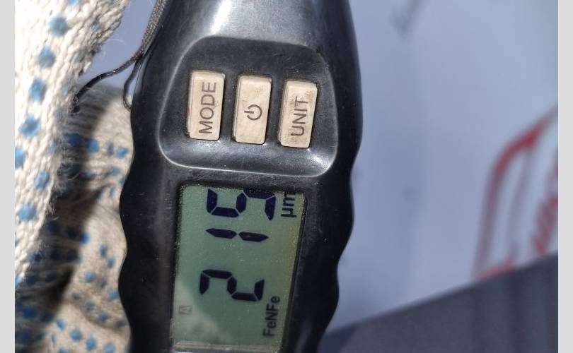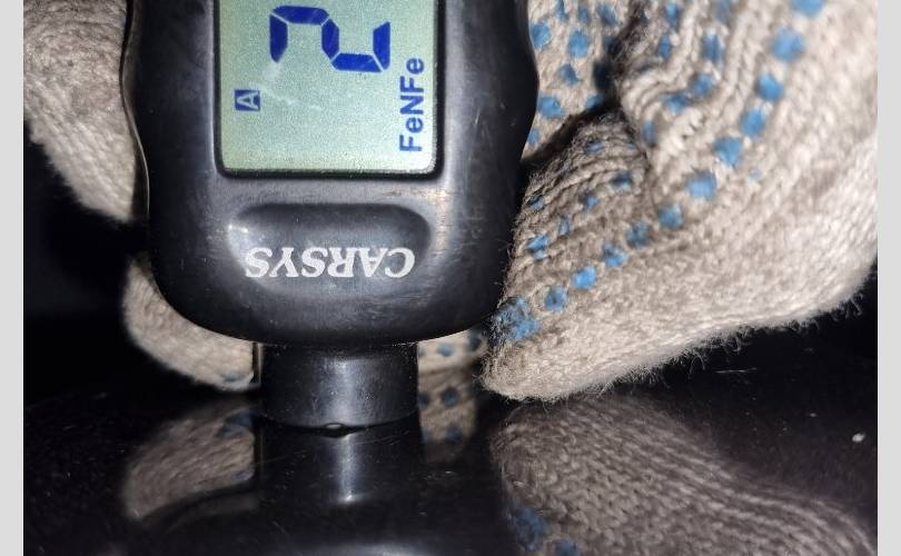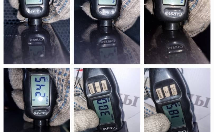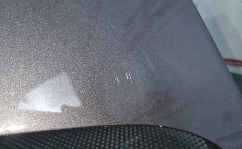 локальный окрас в центре передней части, царапина с вмятиной в центре, вмятина в центре по левому краю, транспортировочные царапины и тычки