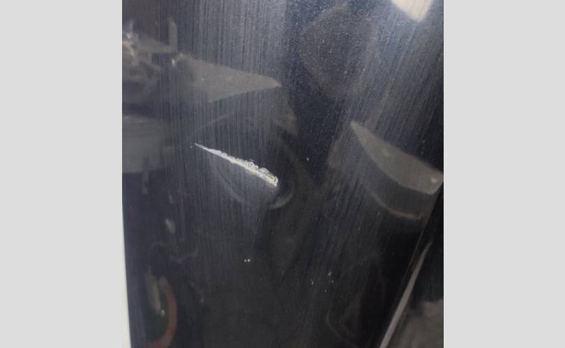 Транспортировочные царапины, потёртости, легкая вмятина, изогнут край