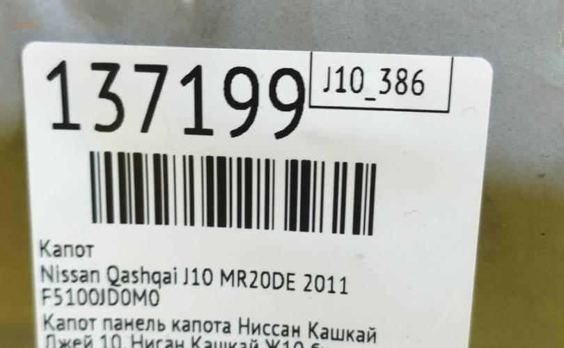 Капот Nissan Qashqai 2007 F5100JD0M0 J10 MR20DE
