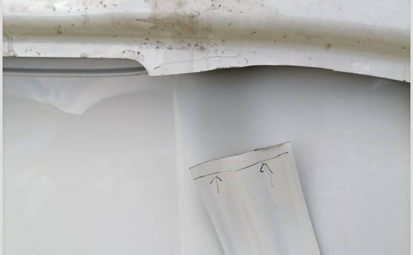 повреждения в передней части, каркас задет, отпилена часть