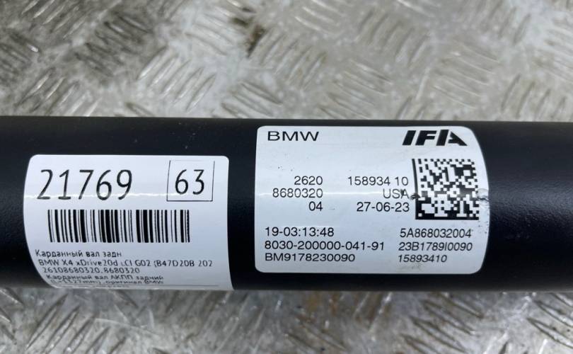 Карданный вал Bmw X4 Xdrive20D Lci 2023 26108680320 G02 (B47D20B, задний