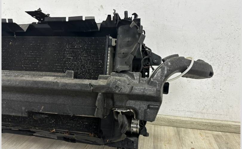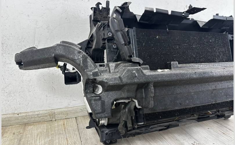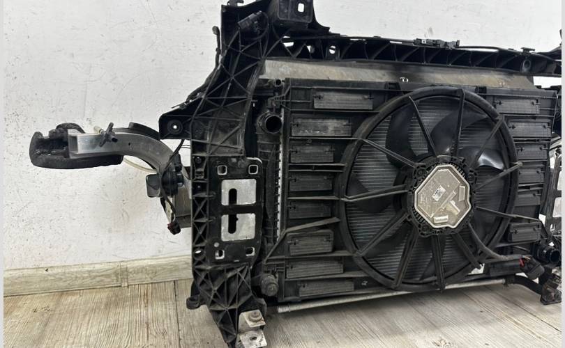 В кассету входят такие детали : охл. над. воздуха, радиатор ОЖ, радиатор кондиционера, передняя панель, диффузор вентилятора, вентилятор(1), остальные запчасти на фото так же входят в кассету. Оригинал! Б/У, в хорошем состояние.