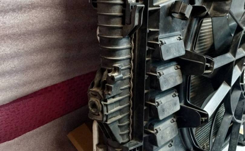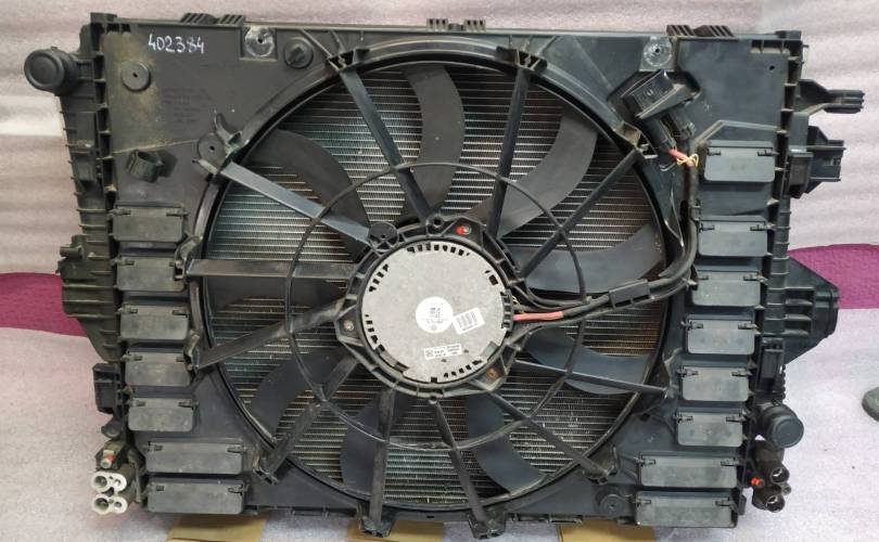 7P0121203H - вентилятор радиатора, 3 радиатора: 7P0121253A - основной, 7P0820411A - кондиционера, 7P0121207A - диффузор вентилятора (рамка), 7P0121093 - крепежная рамка