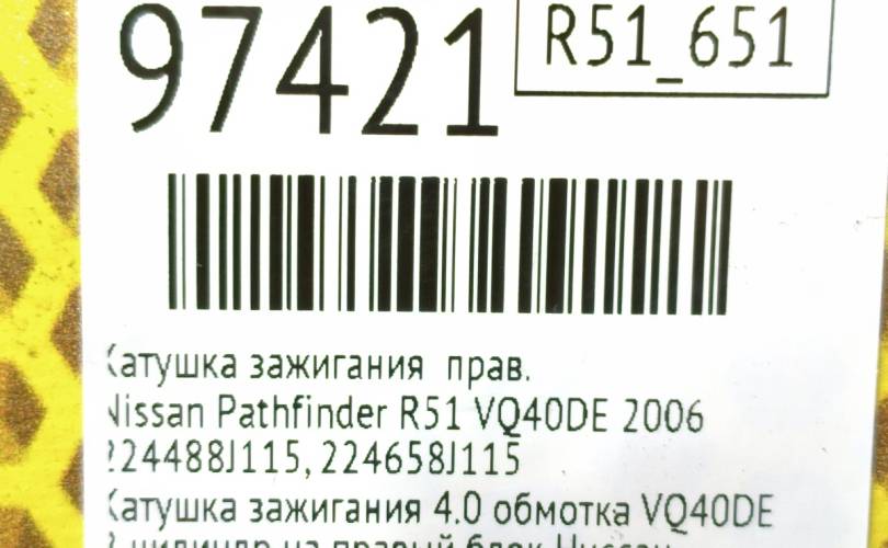 Катушка зажигания Nissan Pathfinder 2006 224488J115 R51 VQ40DE, правая