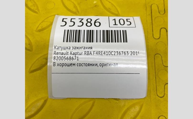 Катушка зажигания Renault Kaptur 2019 8200568671 RBA F4RE410C236763