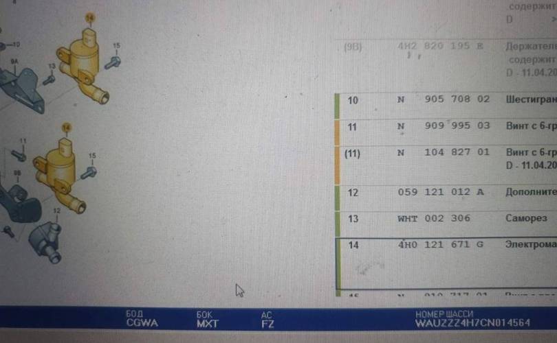 CASA, CASC, ASB, AUK, BNG и ещё 134 двигателя 4H0121671G 4H0 121 671 G