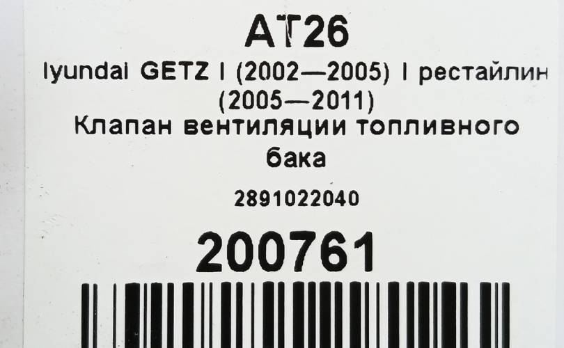 Клапан вентиляции топливного бака на Hyundai GETZ I (2002—2005) I рестайлинг (2005—2011) 2891022040