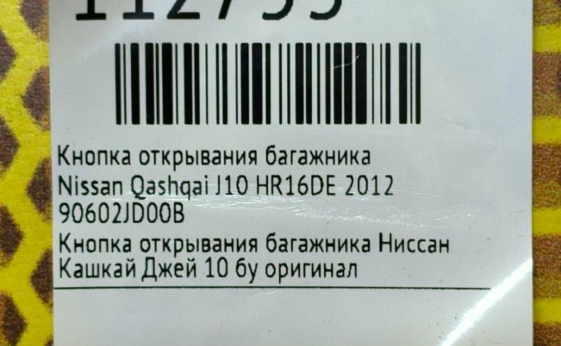 Кнопка открывания багажника Nissan Qashqai 2012 90602JD00B J10 HR16DE