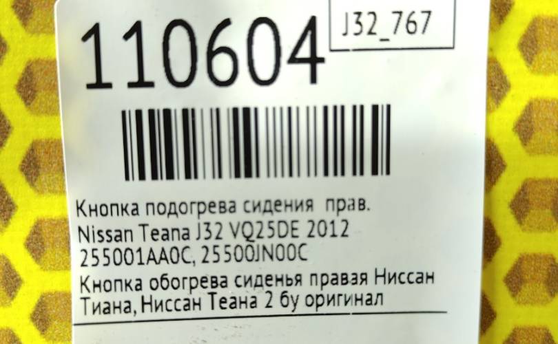 Кнопка обогрева сиденья правая Ниссан Тиана, Ниссан Теана 2 бу оригинал