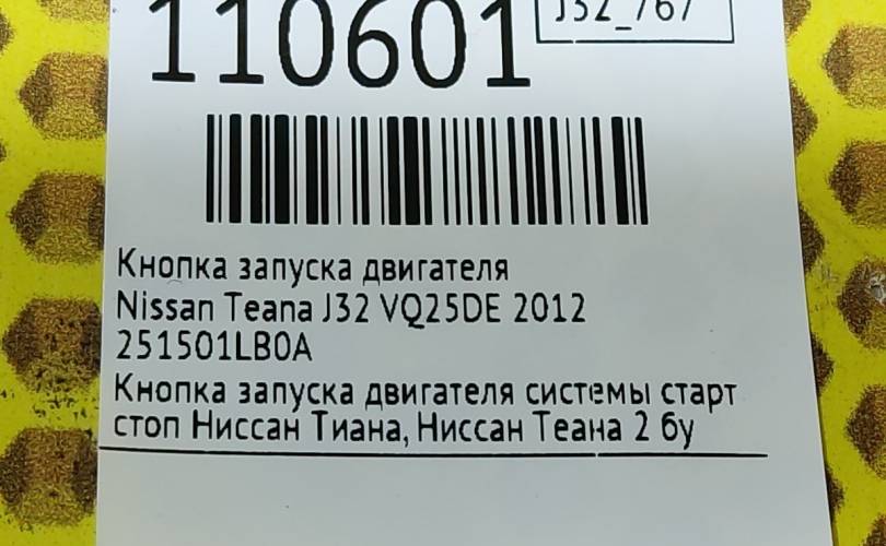 Кнопка запуска двигателя Nissan Teana 2012 251501LB0A J32 VQ25DE