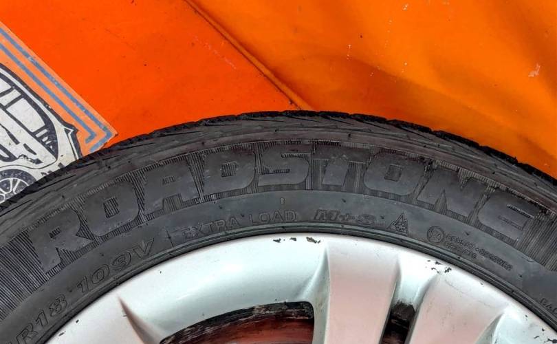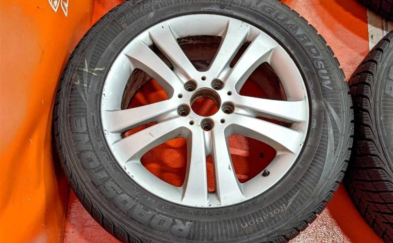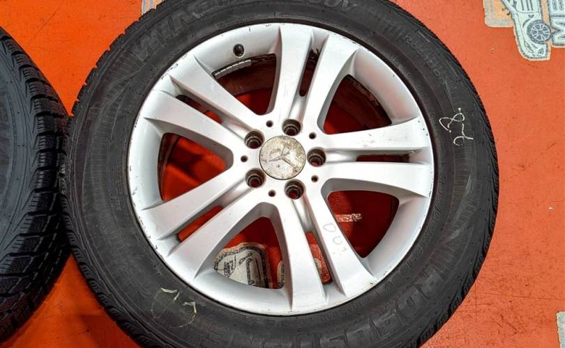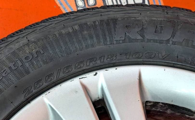 Номер по складу:318169 Комплект - 4 шт. Цвет - серебро. Диски - 8J x 18 H2. ET67 , разболтовка дисков 5 х 112. На дисках имеются небольшие царапины. Резина липучка - Roadstone WinGuardSuv. 255/55 R18. Резина как новая!!!! Индекс скорости - 109V. Дата производства: 2 шт - 24.18, 2шт - 29.17.