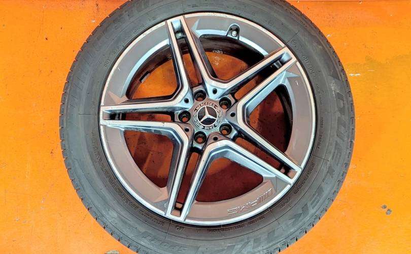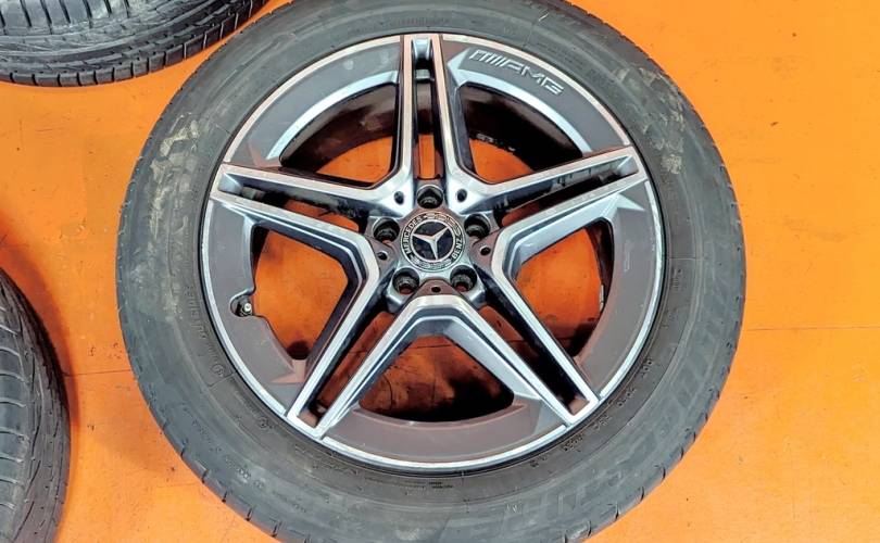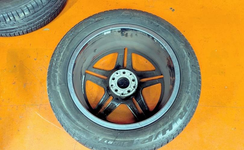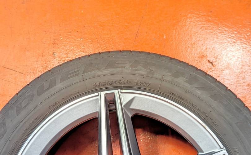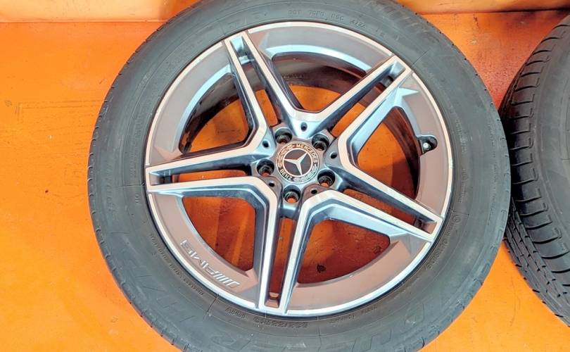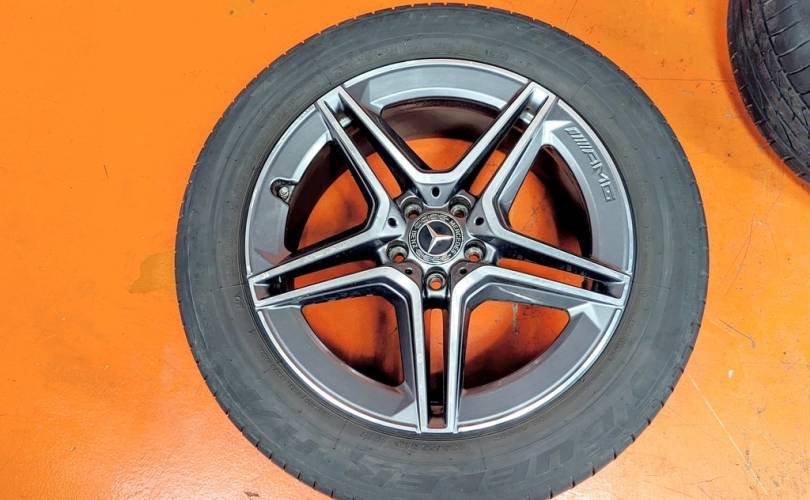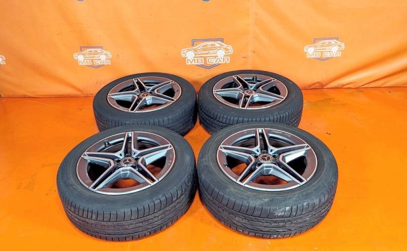 Номер по складу:334735 Комплект - 4 шт. AMG. Диски - 8J X 19 H2 ET 38. На дисках имеются бардюрки. Резина: 4 шт - Bridgestone Dueler H/P Sport 235/55 R19 101V. Дата производства: 2 шт - 47.22. 1 шт. - 34.24. 1 шт. - 11.25. 1 шт. - 44.23.