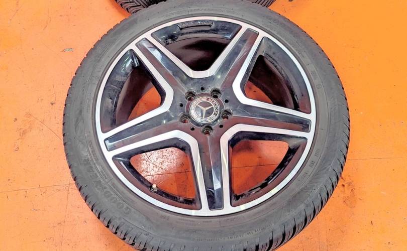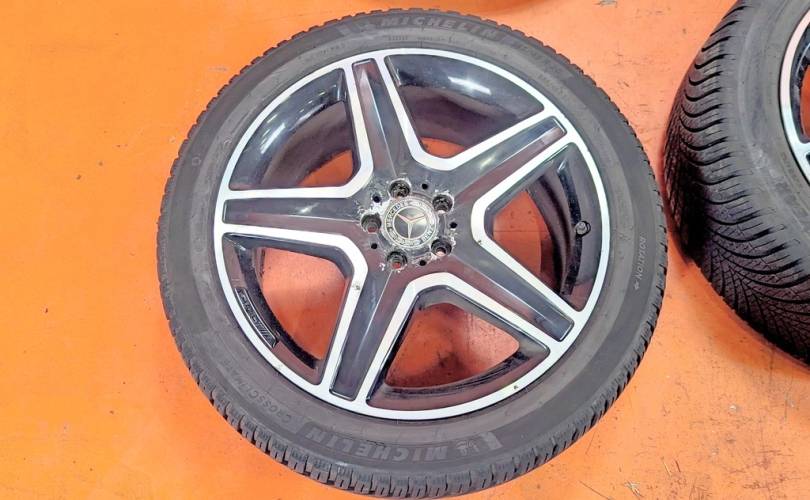Номер по складу:331519 Комплект - 4 шт. AMG. Диски - 9J x 20H2 ET57. Резина: 2 шт. - Michelin CrossClimate 2 SUV, 265/45 R20 108Y. Дата - 08.24. 2 шт. Goodyear Vector 4 Seasons GEN-3, 265/45 R20 108W. Дата - 03.24.