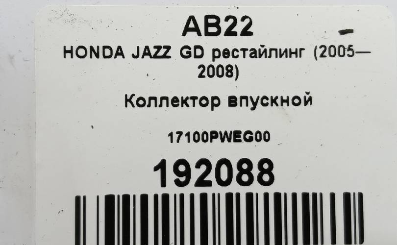 Коллектор впускной на HONDA JAZZ GD рестайлинг (2005—2008) 17100PWEG00
