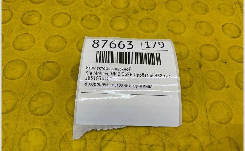 Коллектор выпускной Kia Mohave 2021 285103A100 HM2 D6EB ПРОБЕГ 66938 ТЫС КМ