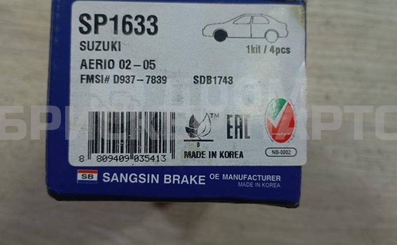 1) Наименование детали: Колодки тормозные пер Сузуки Аерио 1 поколение