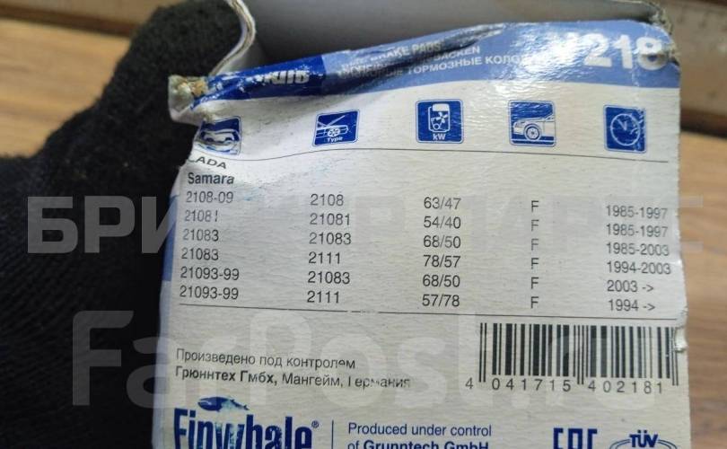 1) Наименование детали: Колодки тормозные пер ВАЗ Лада 2108