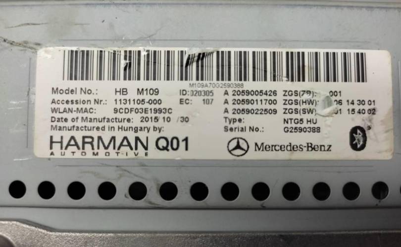 Номер по складу:248909 NTG5 HU, HARMAN с монитором- A2059002211. W190. W205. W253. W447