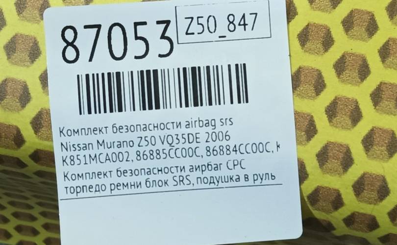 Комплект безопасности AIRBAG SRS Nissan Murano 2006 K851MCA002 Z50 VQ35DE