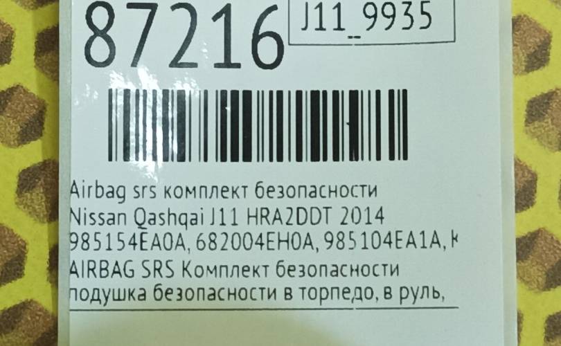 AIRBAG SRS Комплект безопасности подушка безопасности в торпедо, в руль, передние ремни безопасности, блок СРС SRS Ниссан Кашкай 2 Джей 11 бу оригинал
