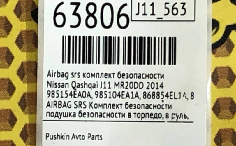 Комплект безопасности AIRBAG SRS Nissan Qashqai 2014 985154EA0A J11 MR20DD