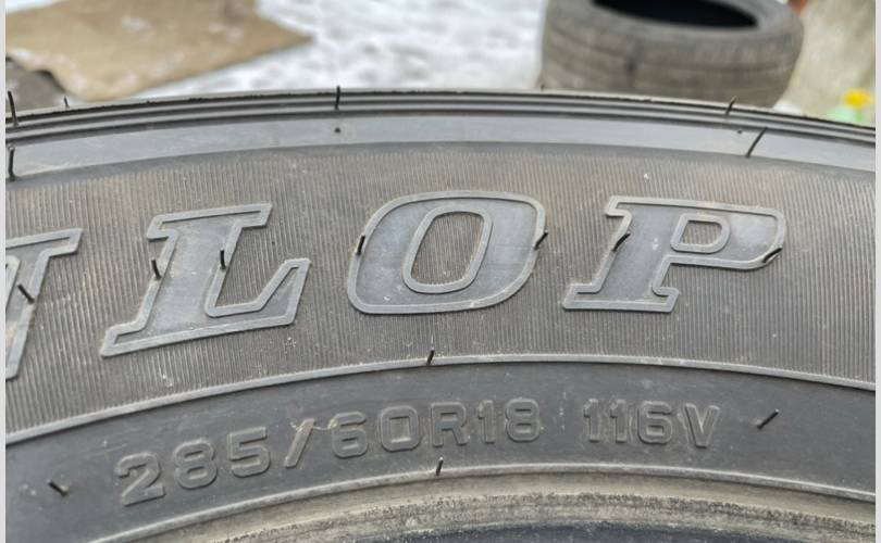 Комплект оригинальных колес Land Cruiser 200 2012-2015г, шины Dunlop Grandtrek AT22, пробег минимальный, одна шина с запаски, новая, диски после косметического окраса, состояние новых.