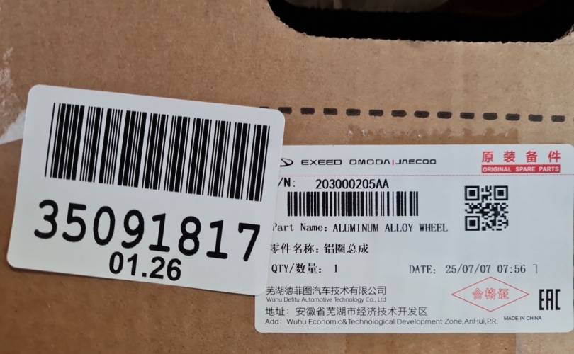 Комплект колесных дисков алюминиевых R18 для Chery Tiggo 7 Pro 2020-