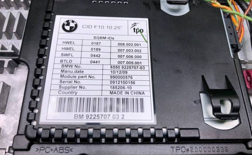 Комплект мультимедиа CID HIGH BMW 5 series 2010 9225707 F10 N55B30A