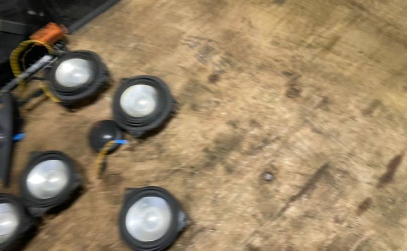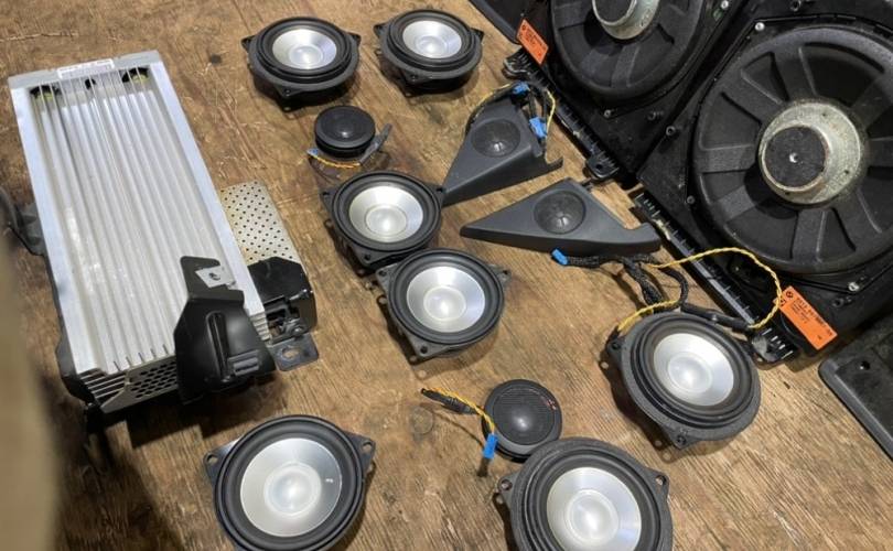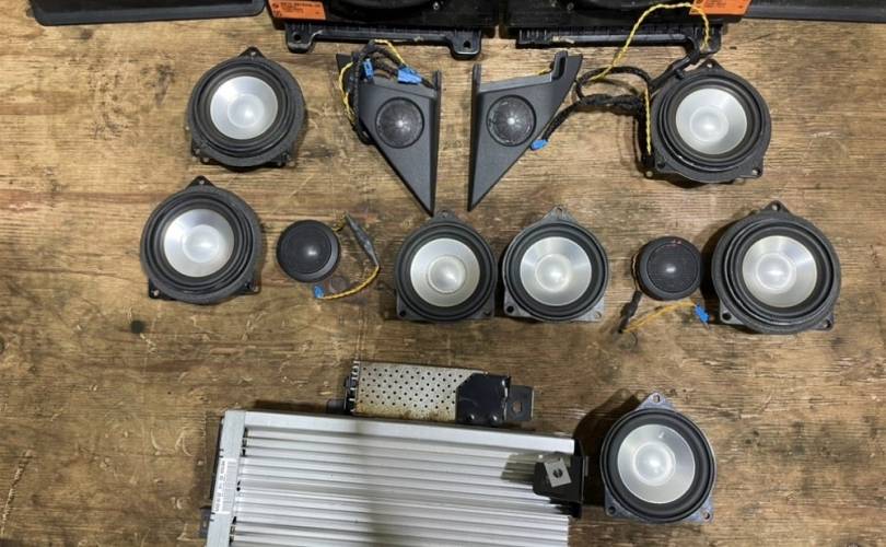 В комплекте все, что на фото: динамики, усилитель звука, сетки на динамики