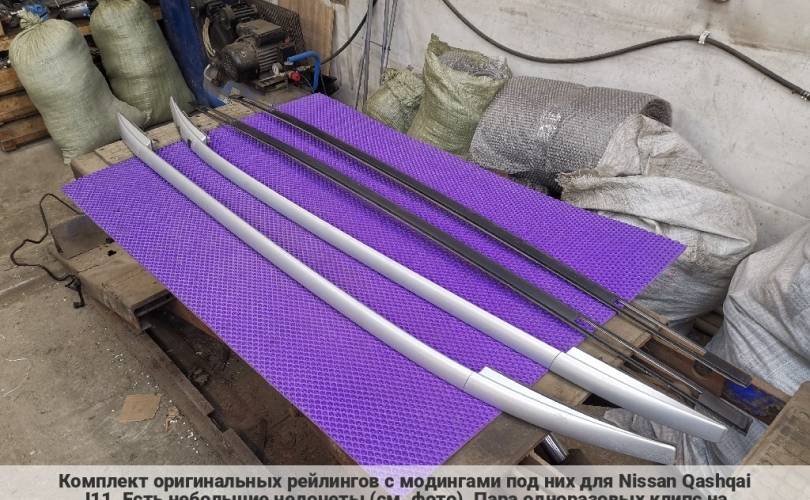 Комплект оригинальных рейлингов с модингами под них для Nissan Qashqai J11. Есть небольшие недочеты (см. фото). Пара одноразовых клипс на моллдингах требует замены. Все ровное. 15 фото у нас на сайте. 73820-4EA0A, 73820-4EA1A, 73821-4EA0A, 73853-DF30A, 73852-DF30A