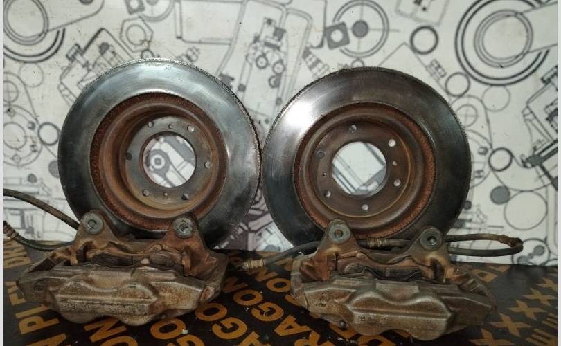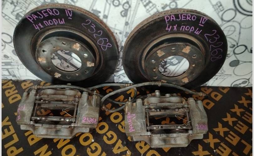 Комплект суппорта и диски тормозные передние б/у оригинал Mitsubishi Pajero 4 V97W 2007 2022