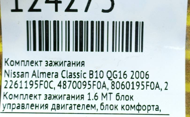 Комплект зажигания Nissan Almera Classic 2006 2261195F0C B10 QG16