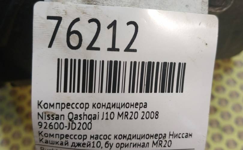 Компрессор кондиционера Nissan Qashqai 2008 92600JD200 J10 MR20