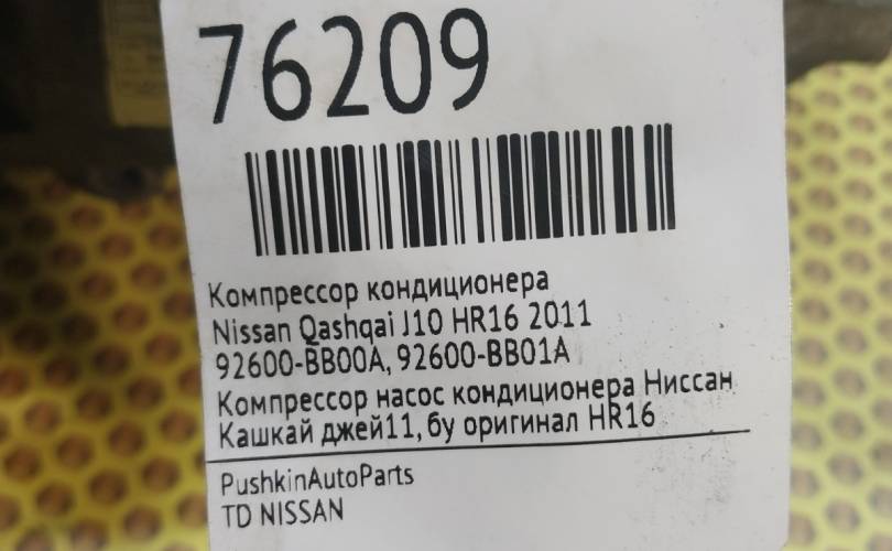 Компрессор кондиционера Nissan Qashqai 2011 92600BB00A J10 HR16