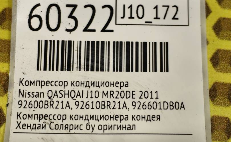 Компрессор кондиционера Nissan QASHQAI 2011 92600BR21A J10 MR20DE
