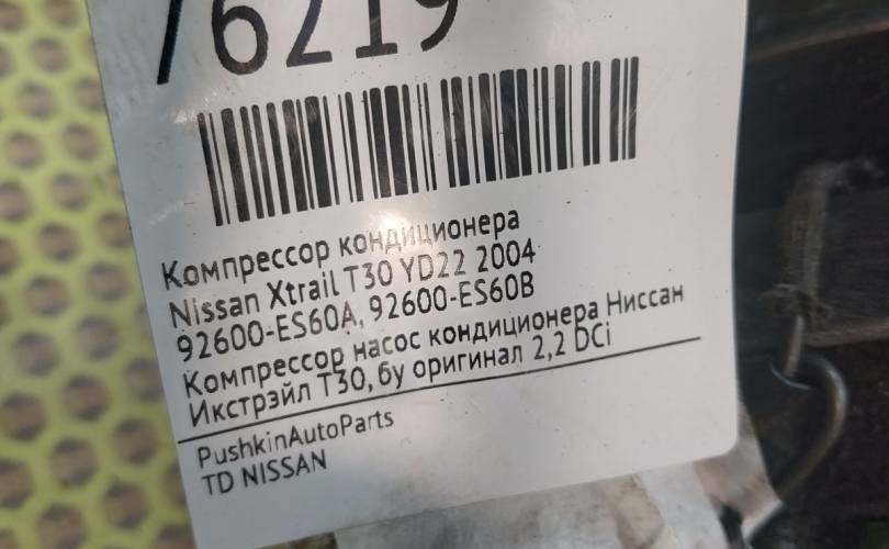 Компрессор кондиционера Nissan Xtrail 2004 92600ES60A T30 YD22