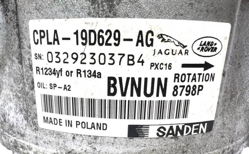 Компрессор кондиционера для Jaguar XF II (X260) / XJ (X351) / F-Pace (X761) / Land Rover Discovery V (L462) / Range Rover Sport II (L494) / Range Rover IV (L405) / Range Rover Velar (L560) с двигателями 3.0 бензин ( 306PS / AJ126 / 30HD0D ) / 3.0D (306DT gen 2 / 30DDTX) / 4.4 V8 турбодизель (448DT) / 5.0 V8 бензин (508PS)