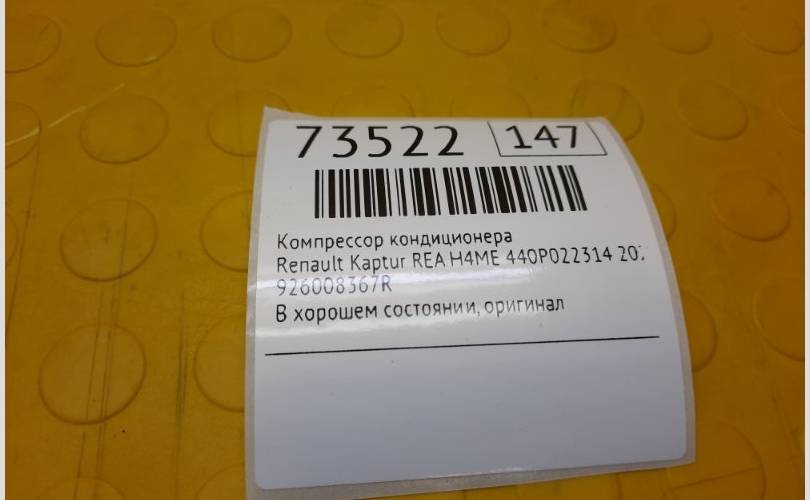 Компрессор кондиционера Renault Kaptur 2021 926008367R REA H4ME 440P022314