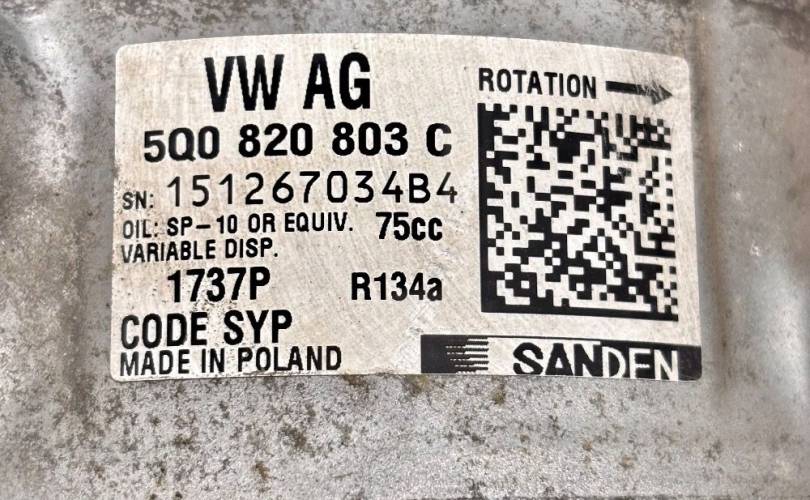 Оригинальный б/у компрессор кондиционера 5Q0820803C.