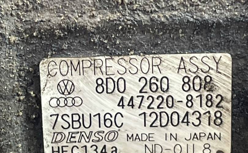 Бензин турбо, Заклинен8D0260808 / 8D0 260 808 / 8D0260805J / 8D0 260 805 JКомпрессор кондиционера Чуть замят шкив 1.6 / 1.8 / 1.9 / 2.0 / 2.4 / 2.8AHL / ANA / ARM / ADP / AEB / ANB / APU / ARK / ATW / AWT / AGA / ALF / AML / APS / ARJ / AJM / ATJ / ALZ / ABC / AJG / AMM / APZ / ACK / AHA / ALG / AMX / APR / AQD / ATQ / AZM / AVF / AWX / AVB / BSS / BSV / BPZ