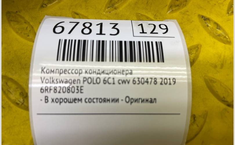 Компрессор кондиционера Volkswagen POLO 2019 6RF820803E 6C1 CWV 630478
