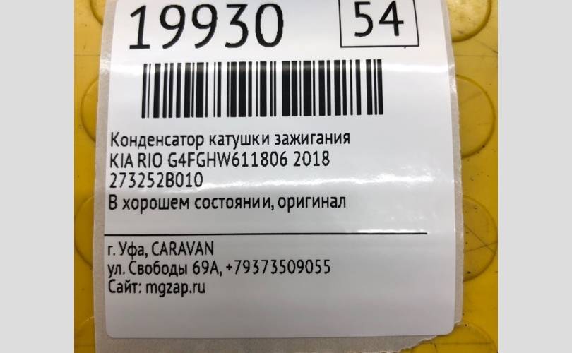 Конденсатор катушки зажигания Kia RIO 2018 273252B010 G4FGHW611806