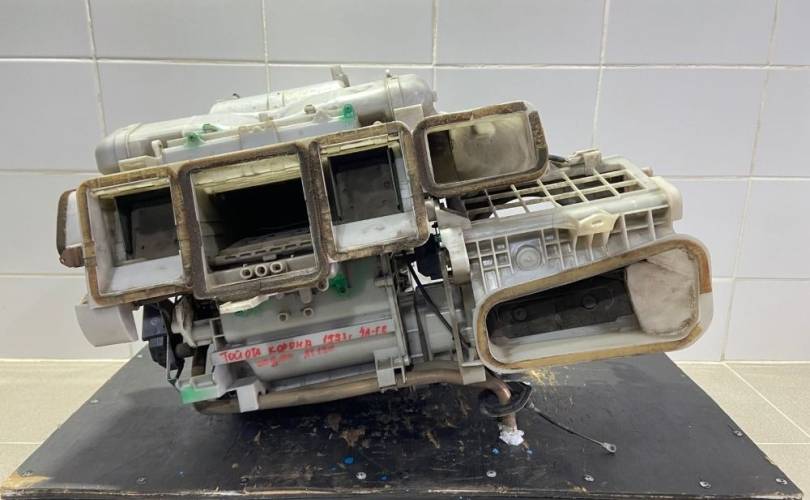 Корпус печки с радиаторами. Снят с Тойота Корона 1993 год (TOYOTA CORONA 1993 г.) двс 5A-FE 1.5 л., 105 л. с., бензин, трамблер, АКПП A245E-02A, кузов седан AT190, цвет синий, правый руль