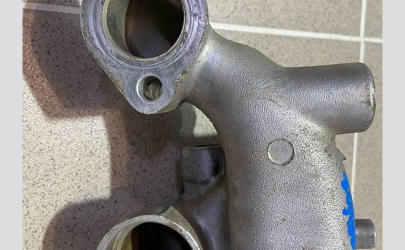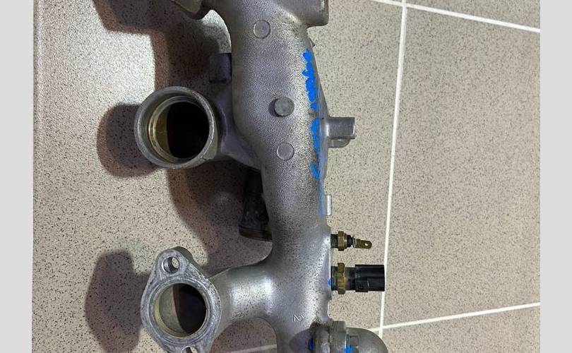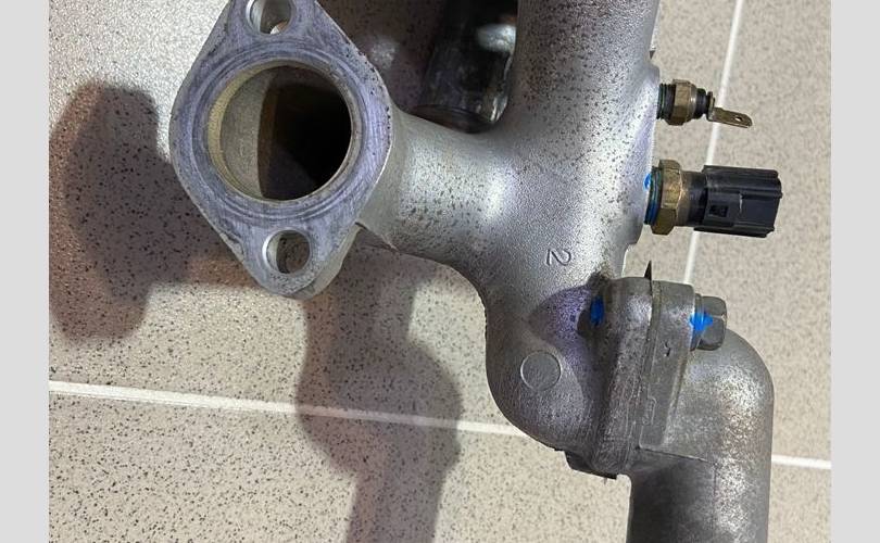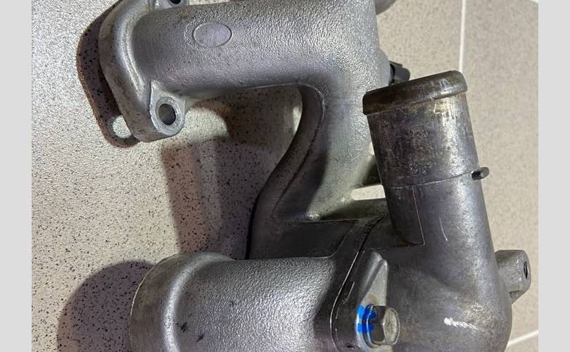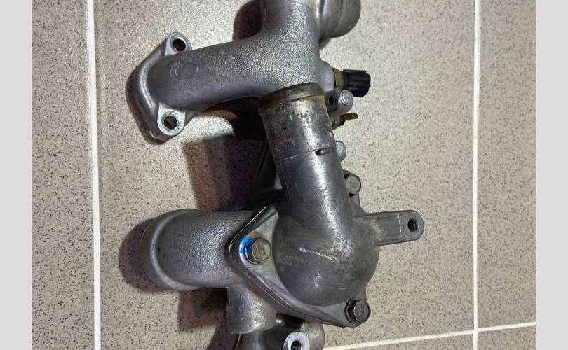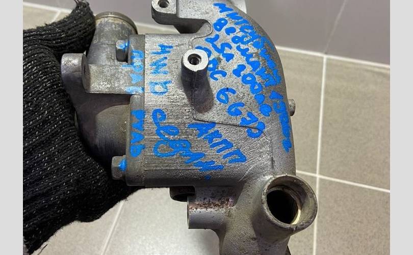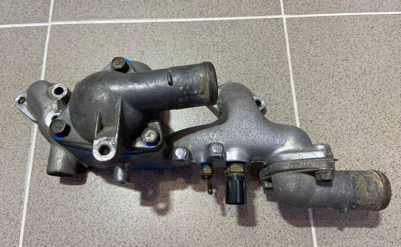 Корпус термостата. Разбор Митцубиси Диамант 1996 года (Mitsubishi Diamant 1996 года), модель двигателя 6G73 2.5 л. 200 л. с., акпп W4A42 3312, кузов F41A легковой седан, правый руль, полный привод, цвет серый.